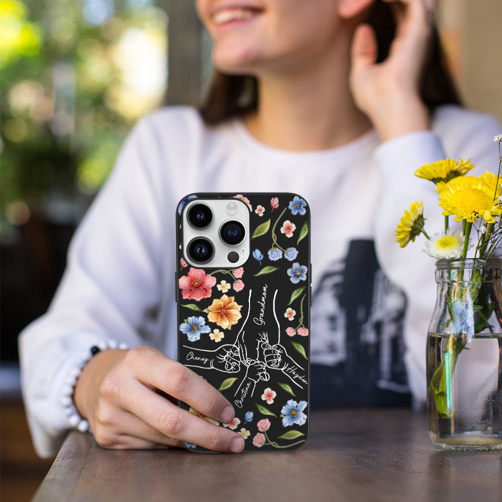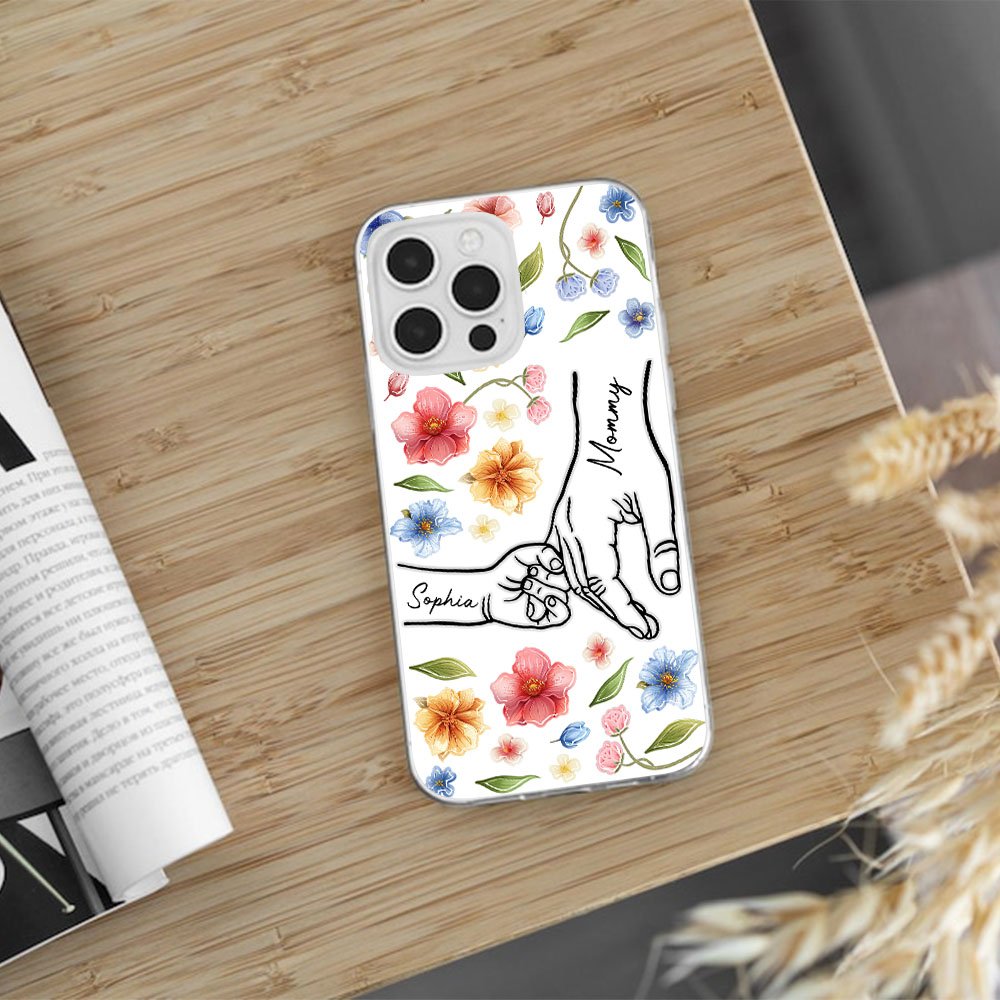 Our personalized holding hands phone case is a heartfelt tribute to the remarkable women in your life. The design features a beautiful pattern of a mother holding children's hands, symbolizing love, care, and the unbreakable bond between a mother and her family. The watercolor flowers and leaves pattern adds vibrancy and charm.