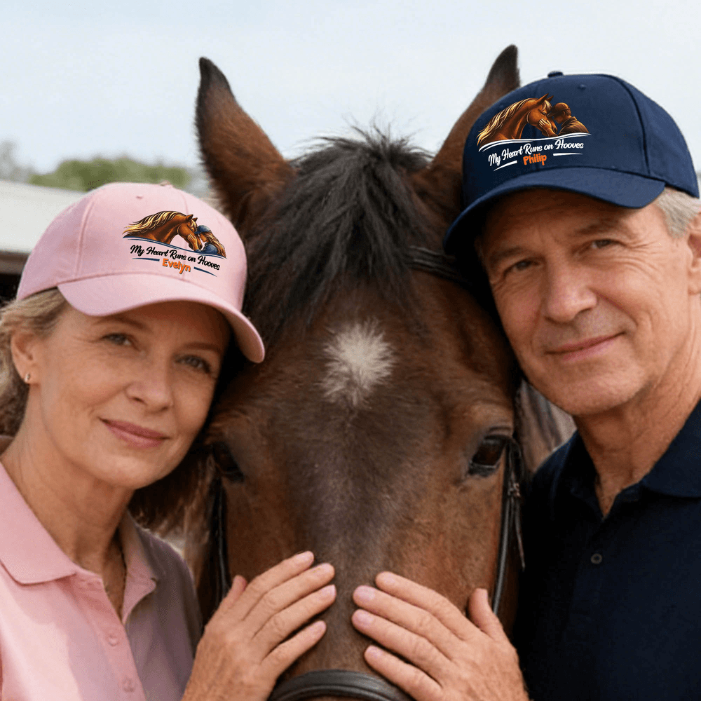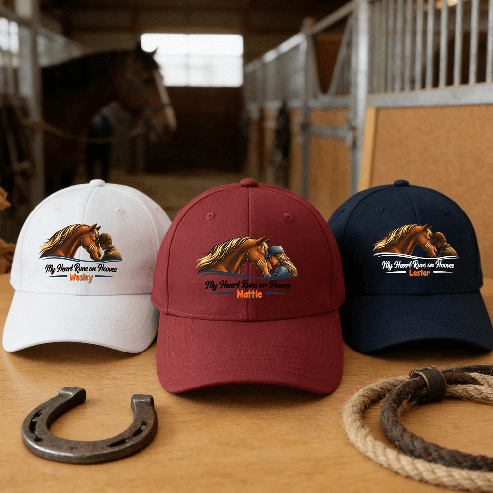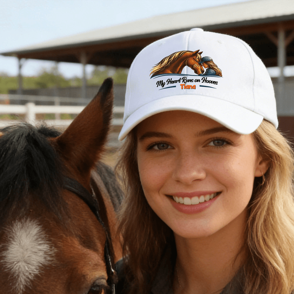 Caratterizzato da una calda illustrazione in stile acquerello di una persona e del suo cavallo come motivo centrale, abbinata a un nome personalizzabile, questo cappello crea una firma unica per ogni appassionato di equitazione. Scegliete tra i versatili colori del cappello per abbinarlo a qualsiasi stile, sia in scuderia che per strada, mostrando con orgoglio il vostro amore per i cavalli e il vostro stile personale.