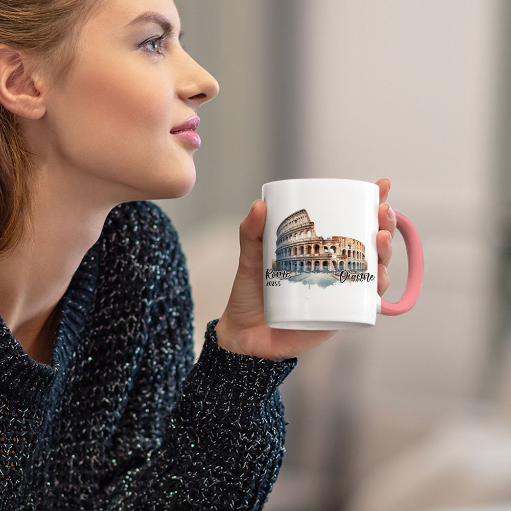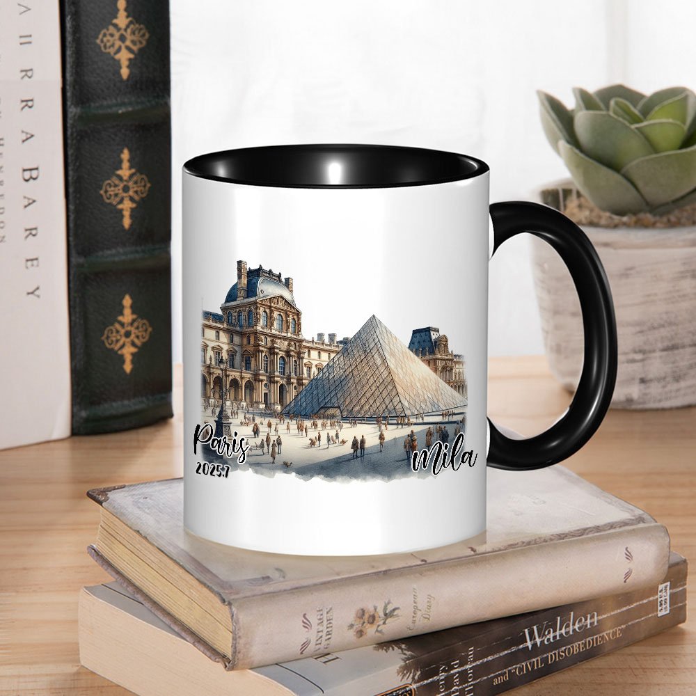 Deliziate gli appassionati di viaggi e gli amanti dell'architettura con questa tazza. Questo regalo può essere personalizzato con un nome, una località e una data, rendendolo un ricordo unico e prezioso per compleanni, anniversari o viaggi memorabili.