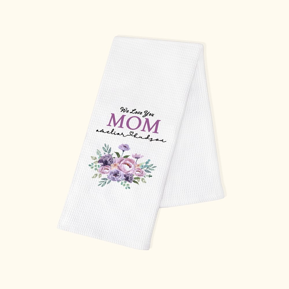 Questo strofinaccio ha dei fiori stampati su di esso e può essere personalizzato per dire qualcosa a tua madre o a tua nonna per esprimere il tuo apprezzamento e il tuo amore per loro.