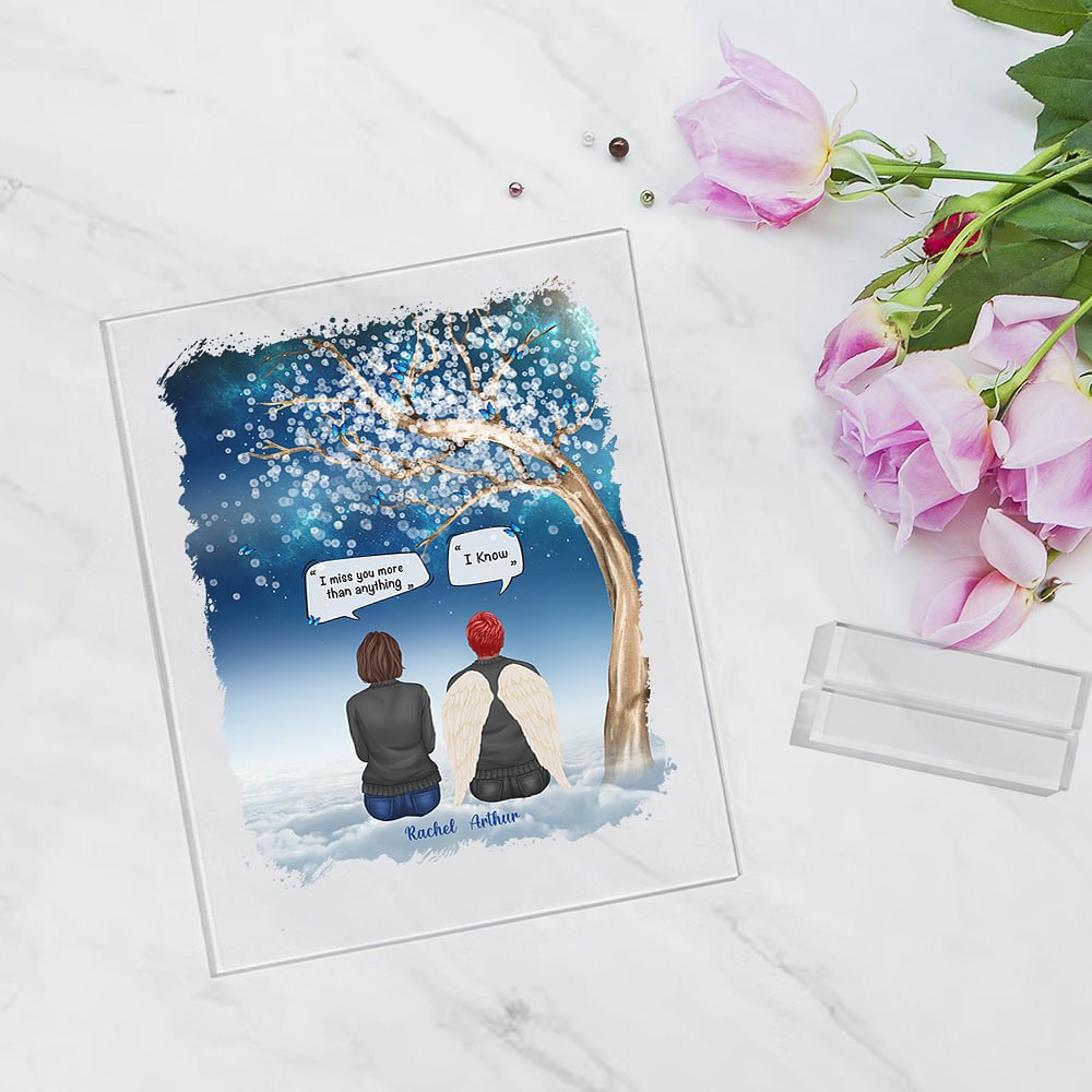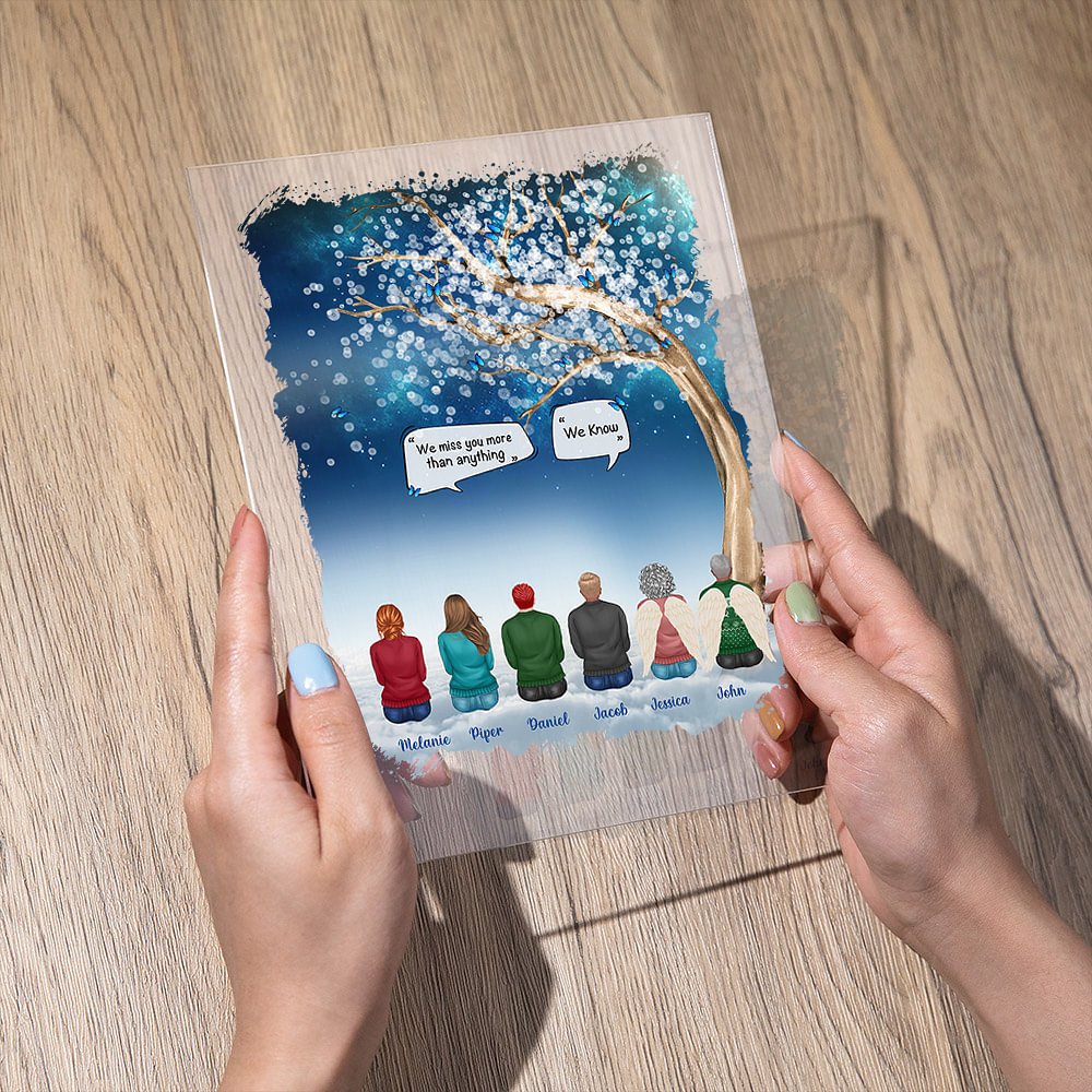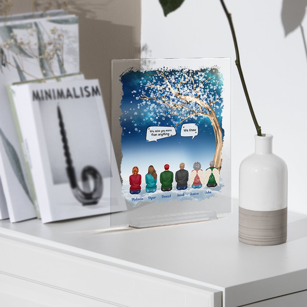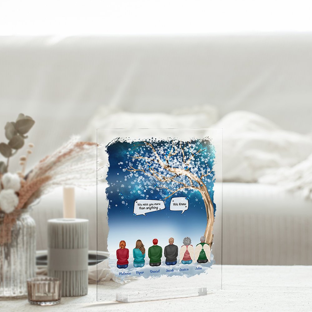 Dal design unico, questa targa in acrilico presenta un'affascinante scena combinata con un elemento natalizio che mostra un'immagine commovente della famiglia o degli amici che trascorrono del tempo insieme. Con l'aggiunta di "We Miss You More Than Anything I Know" e un messaggio personalizzato, sarà un ricordo speciale che celebra l'amore eterno tra le persone.