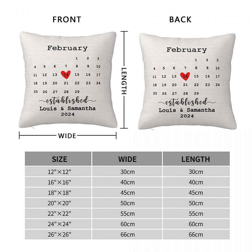 Lasciatevi incantare dall'amore con il nostro cuscino, l'ultimo regalo di San Valentino o di matrimonio per la coppia straordinaria della vostra vita. Il design raffinato mostra con gusto la data specifica in cui la coppia si è unita in matrimonio insieme ai loro nomi, trasformandolo in un tesoro senza tempo destinato ad abbellire la loro casa con orgoglio per gli anni a venire.