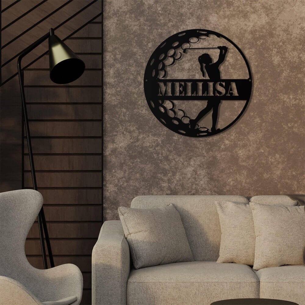 Personalizzato donna golfista nome segno decorazione per camera metallo arte della parete