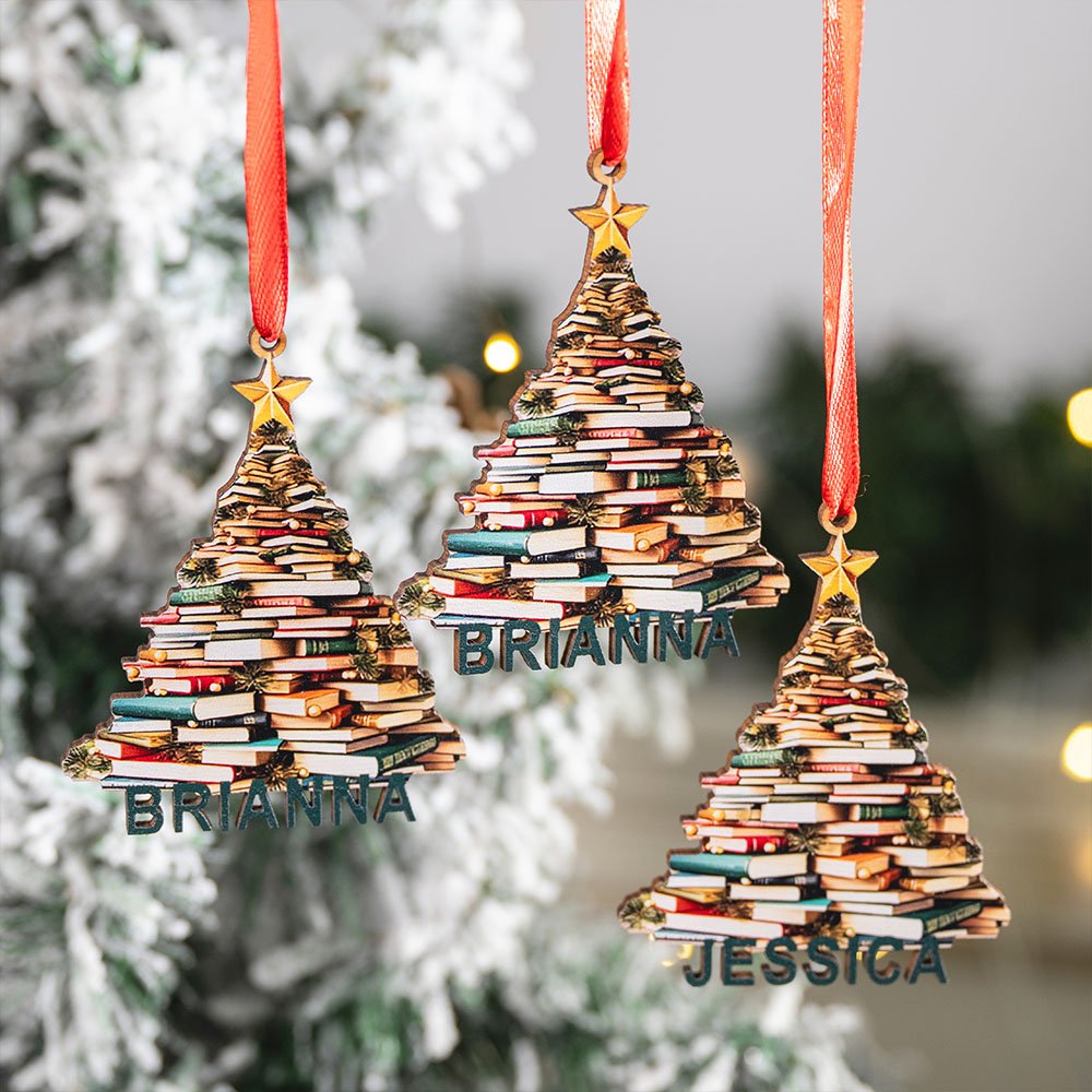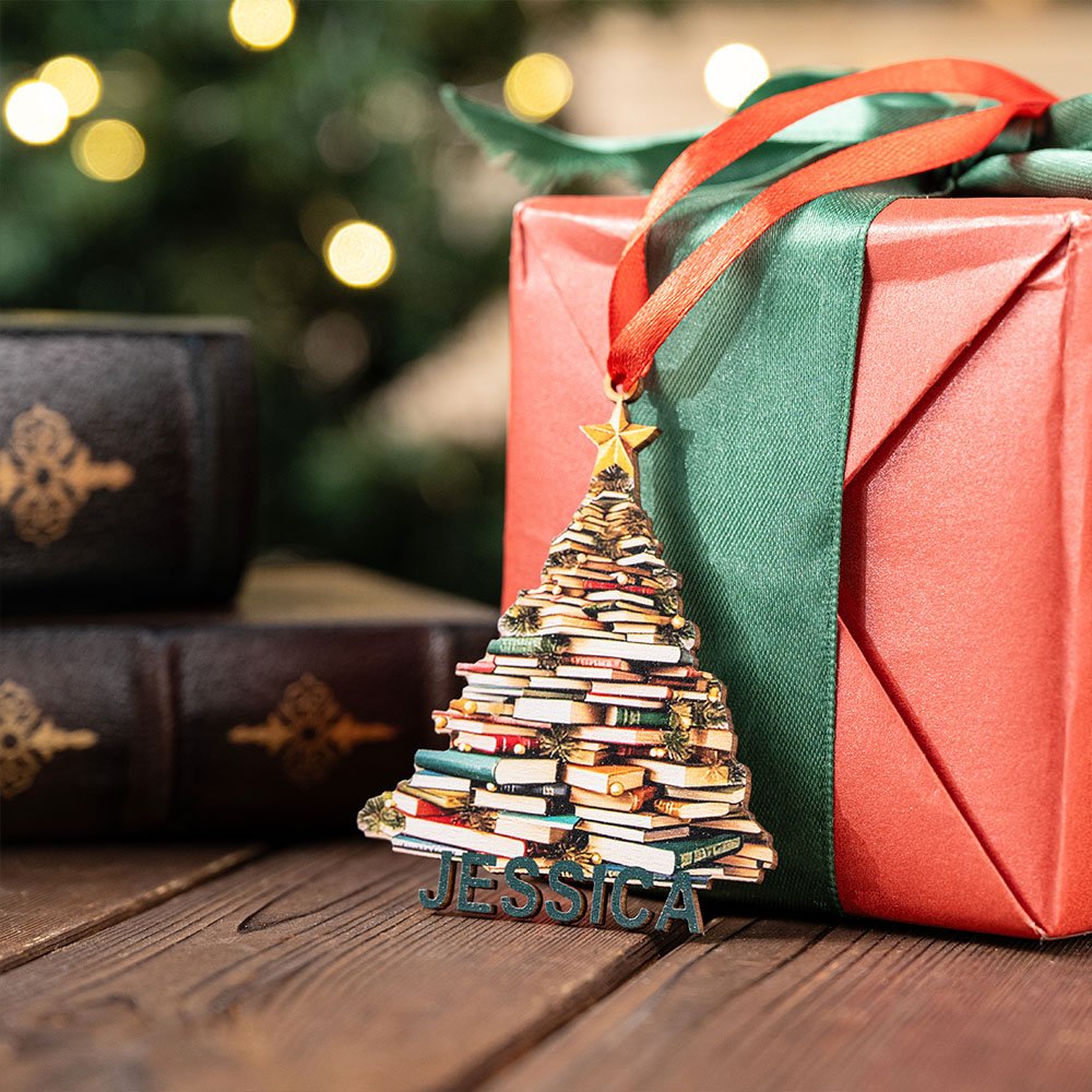 Questo ornamento presenta un design unico dell'albero di Natale con un gran numero di libri impilati e una stella a cinque punte in cima. Con i libri come elemento centrale, aggiunge un'atmosfera culturale unica al vostro Natale. È inoltre possibile personalizzare il proprio nome per renderlo un prezioso souvenir natalizio.