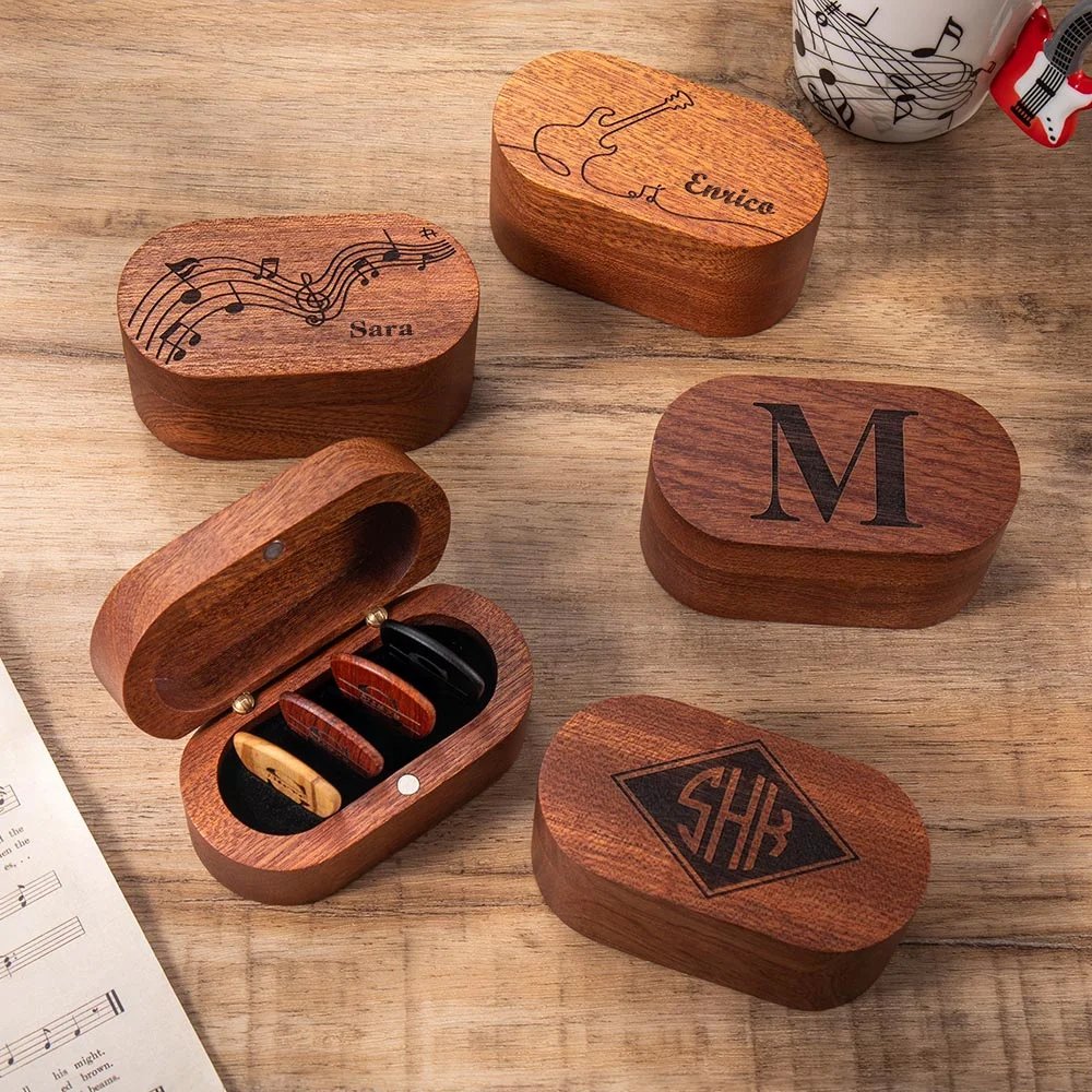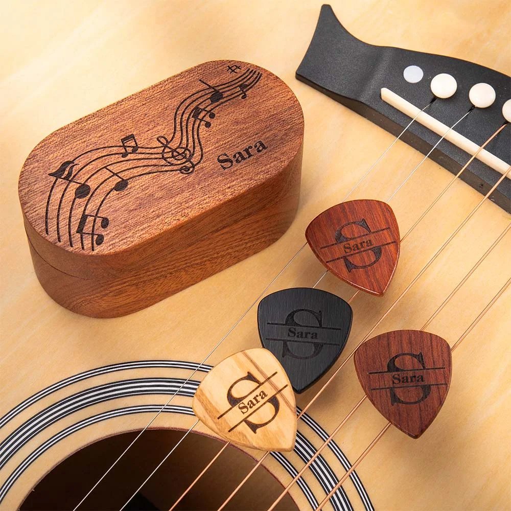 Aprire questa scatola in legno e trovare plettri personalizzati è un momento speciale. La combinazione di personalizzazione accurata, design raffinato e funzionalità pratica rende questo prodotto un regalo ideale per compleanni, lauree, anniversari e altre occasioni a tema musicale.