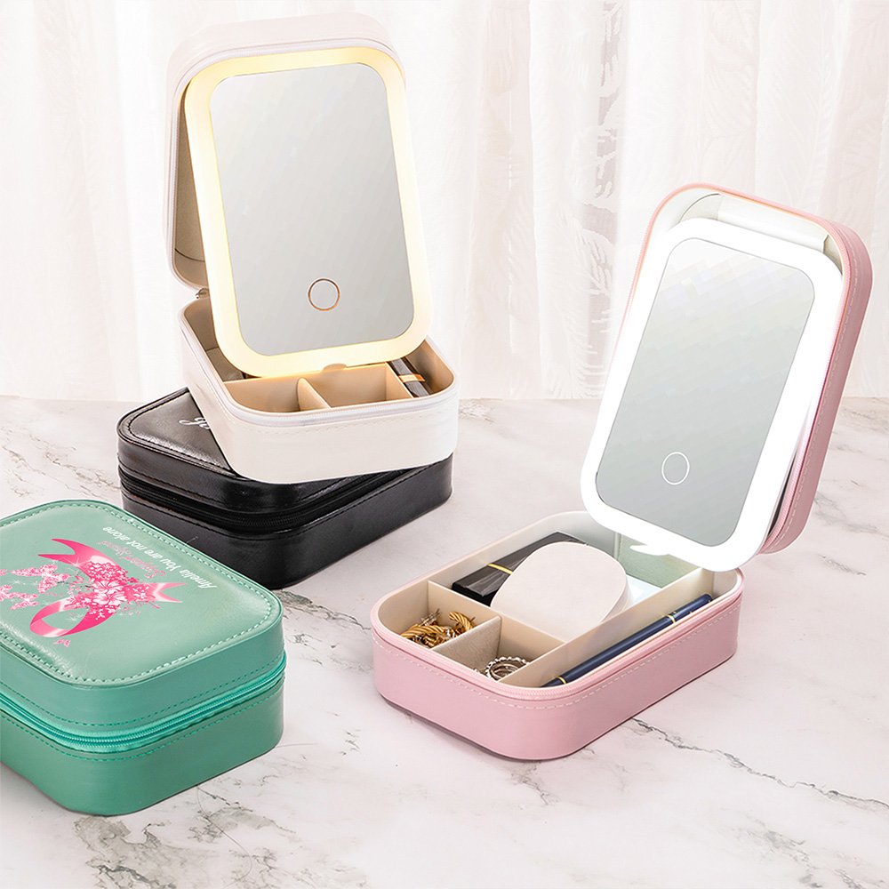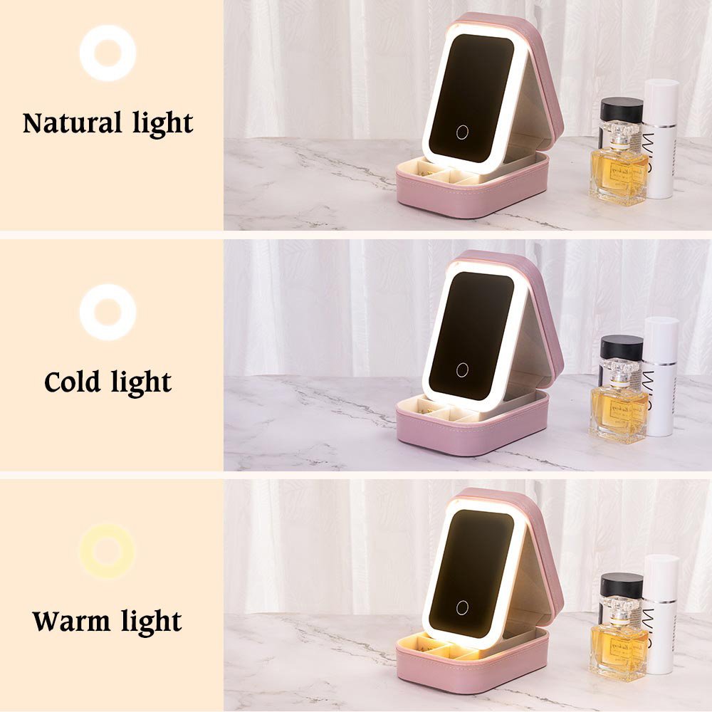 Questo portagioie è dotato di uno specchio a LED con tre impostazioni di colore regolabili: luce calda, luce naturale e luce fredda, che possono essere utilizzate per creare atmosfere diverse. Viene fornito con un cavo di ricarica, che può essere utilizzato per circa una settimana con una sola carica. Che vi stiate preparando per una serata fuori o per una giornata informale, scegliete la luce più adatta alle vostre esigenze. Questo pratico specchio è perfetto per applicare il trucco e controllare il proprio look.