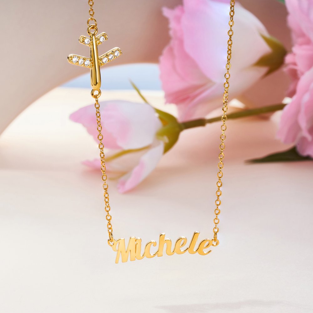 Volate verso nuove vette con la nostra collana con ciondolo a forma di aeroplano. Combinando l'eleganza dei gioielli con la passione per i viaggi, l'accattivante motivo dell'aereo, abbinato a un nome personalizzabile, crea un ricordo speciale che evoca le avventure e i sogni del volo.