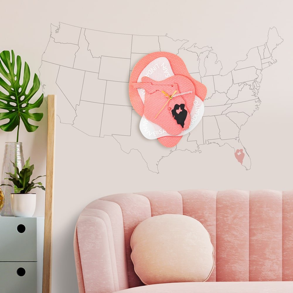 Per le coppie, lo Stato in cui si incontrano e vivono è significativo. Il luogo è pieno di amore reciproco e di ricordi indimenticabili. Nel frattempo, è possibile personalizzarlo con nomi e date o parole di vostra scelta. Il nostro orologio è perfetto per un regalo di matrimonio o di anniversario unico e premuroso.